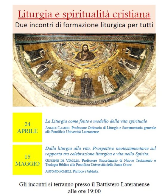 - Ore 9:45 Pellegrinaggio parrocchiale al Battistero e alla Basilica Lateranense per i 1700 anni dalla sua Dedicazione